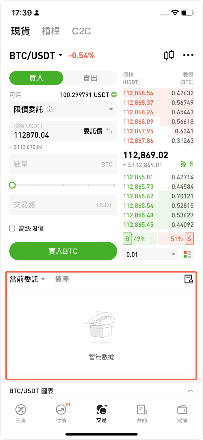 ● 進入交易頁面後,系統會預設顯示現貨交易頁面;